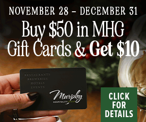 • $50 Murphy Hospitality Group Gift Card, to use in our lounge or at any MHG location